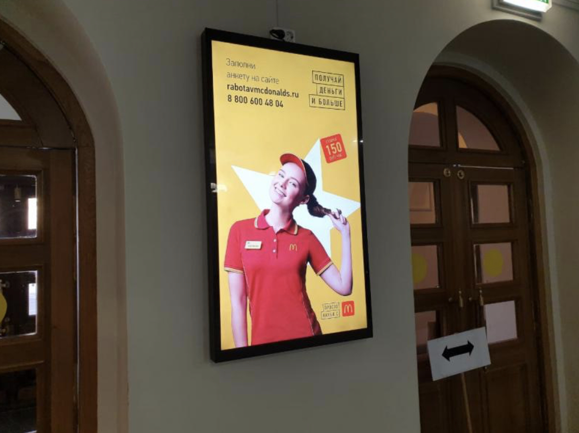 Традиционный слоган «Просто начни с Макдоналдс» встречает студентов во входных зонах учебных заведений Казани.