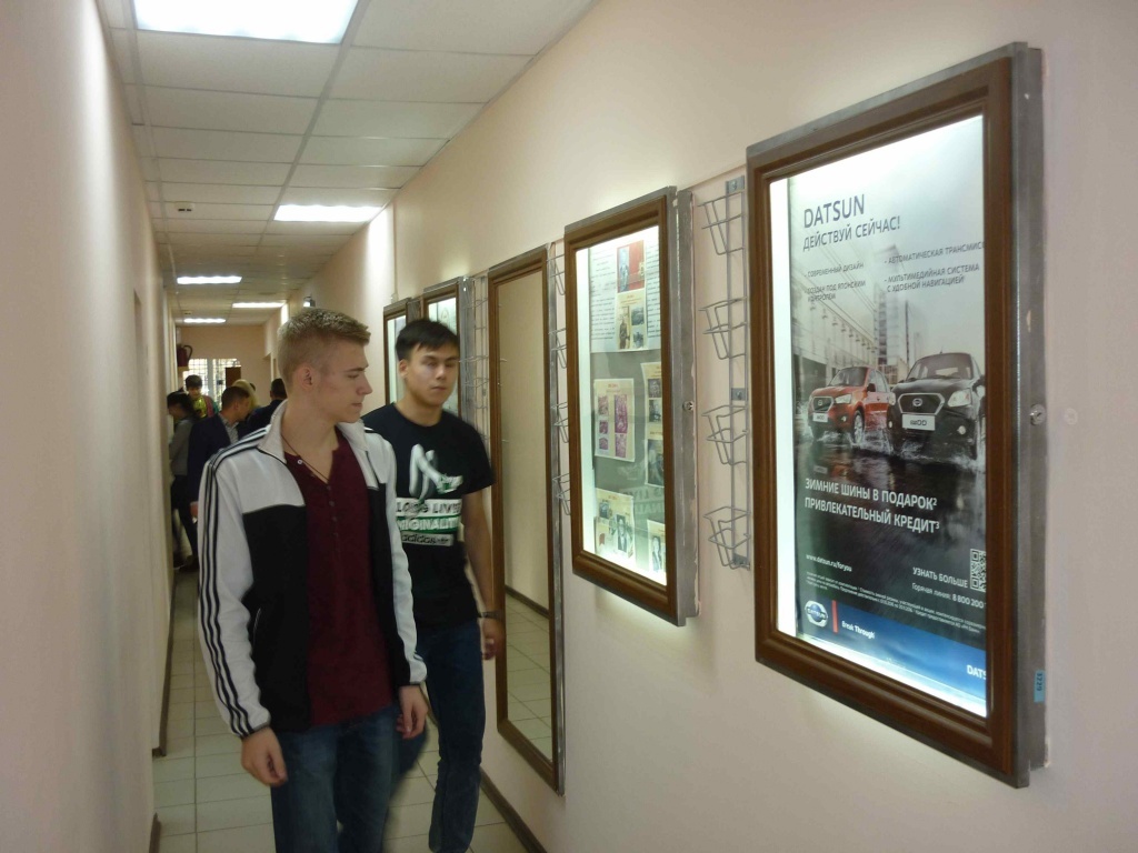 Рекламные плакаты формата А1 и А0 размещены на популярных конструкциях рекламного агентства «МаксМедиаГрупп» инфоборд и световой лайтбокс в ста корпусах крупнейших ВУЗов Воронежа, Волгограда, Самары, Саратова, Краснодара, Екатеринбурга, Тюмени, Челябинска, Новосибирска, Казани, Набережных челнов, Пензы, Тольятти и Уфы.