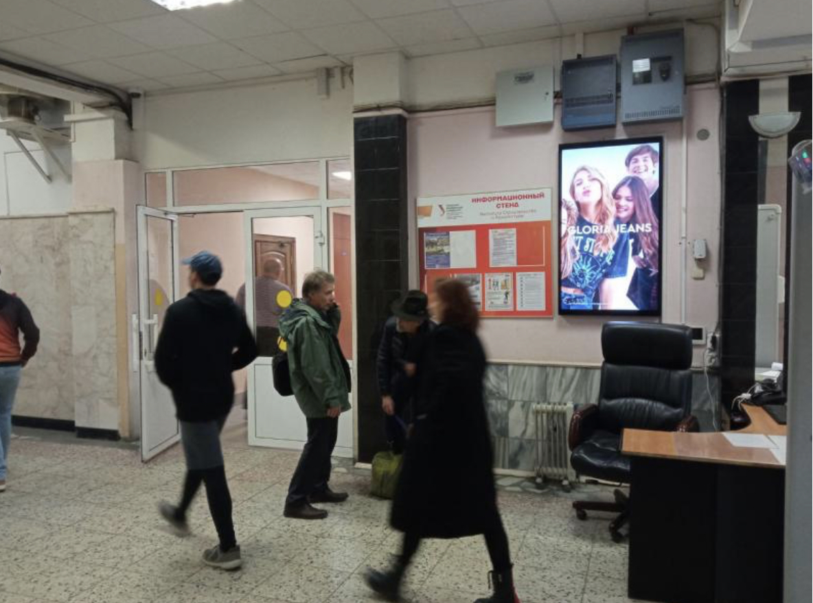 Стильная динамичная реклама одежды Глория Джинс появилась более чем на двух сотнях мониторах MMG в различных вузах страны